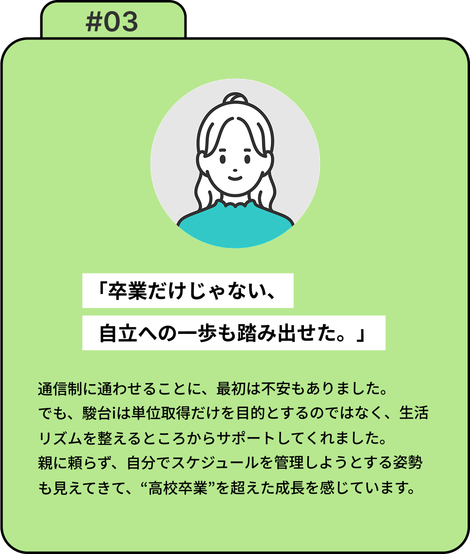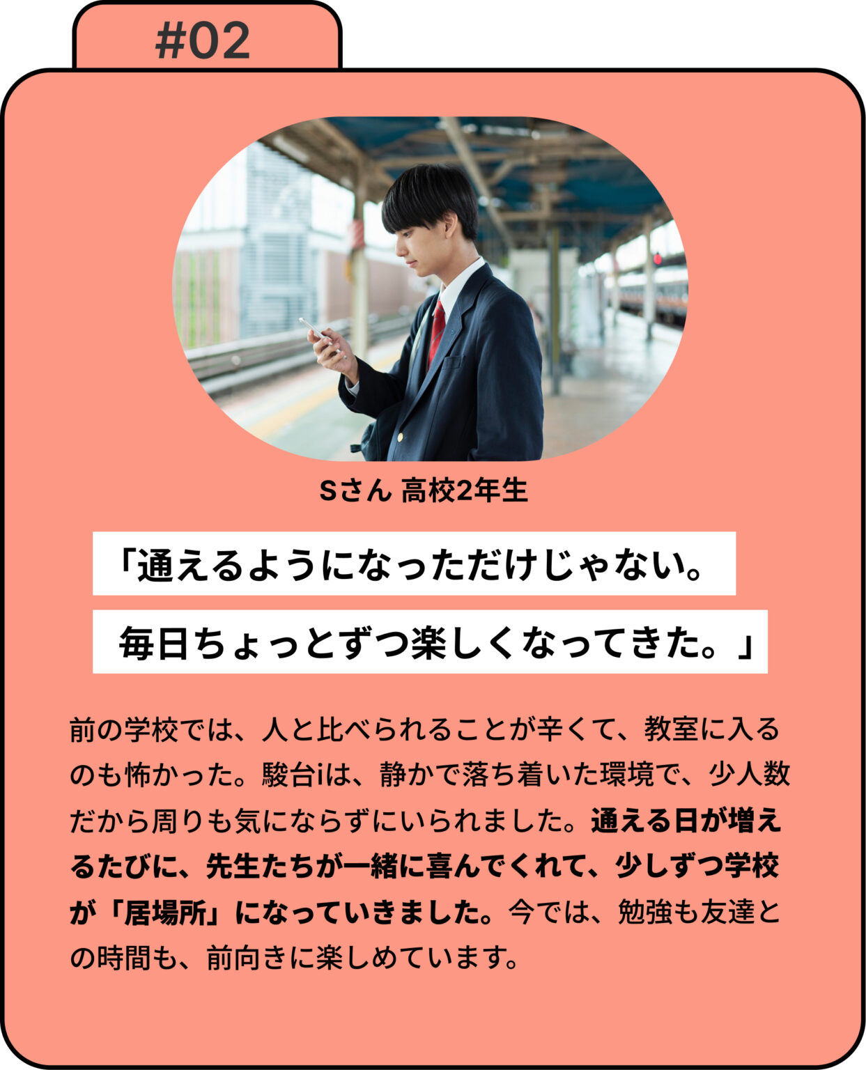 駿台i高等学院は、“できること”から始められて、“未来につながる学び”ができる学校です。