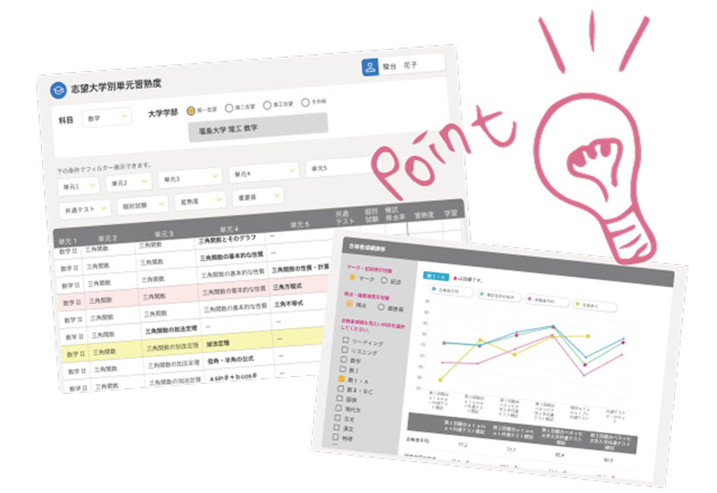 データから弱点をあぶり出し、効率的に弱点克服と成績アップへ。いま、学習すべき内容・ポイントを明確にできます!!
