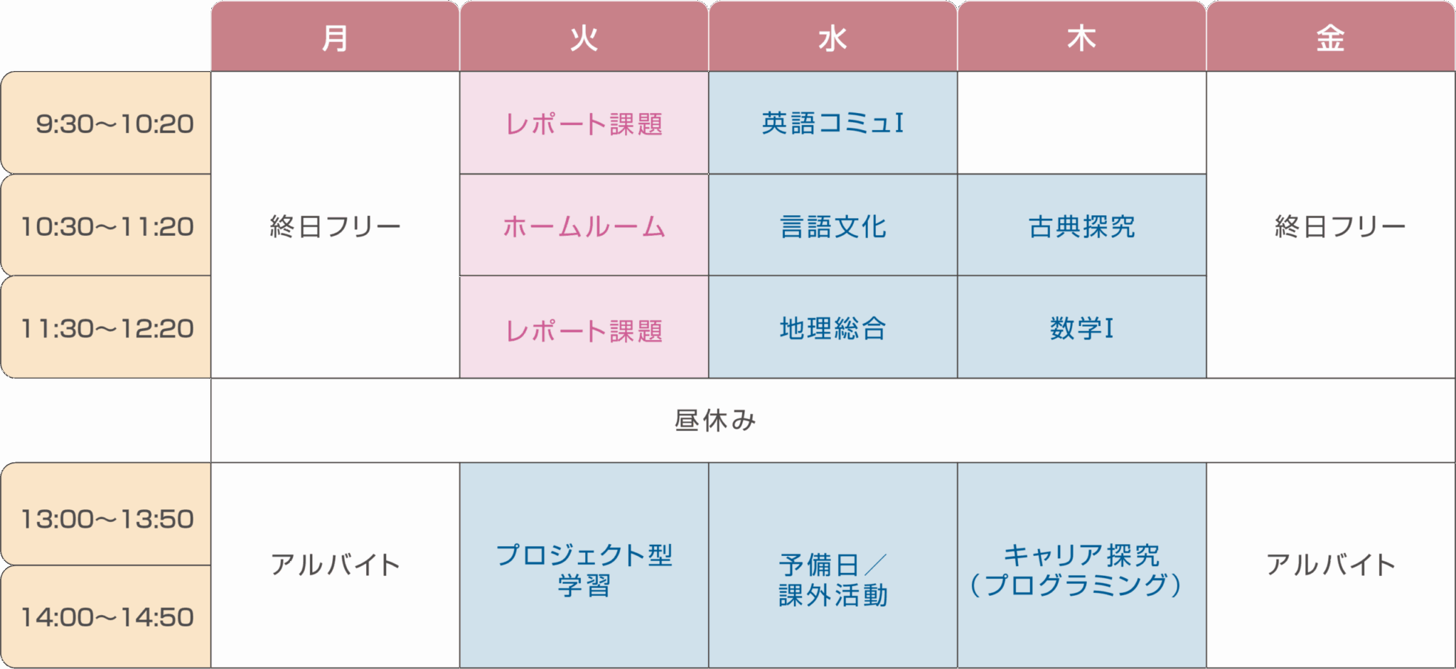 先生と相談しながら、一人ひとりの生活スタイルに合わせた登校日や時間割を作れます。登校日は目安なので、状況に合わせて自由に登校してください。