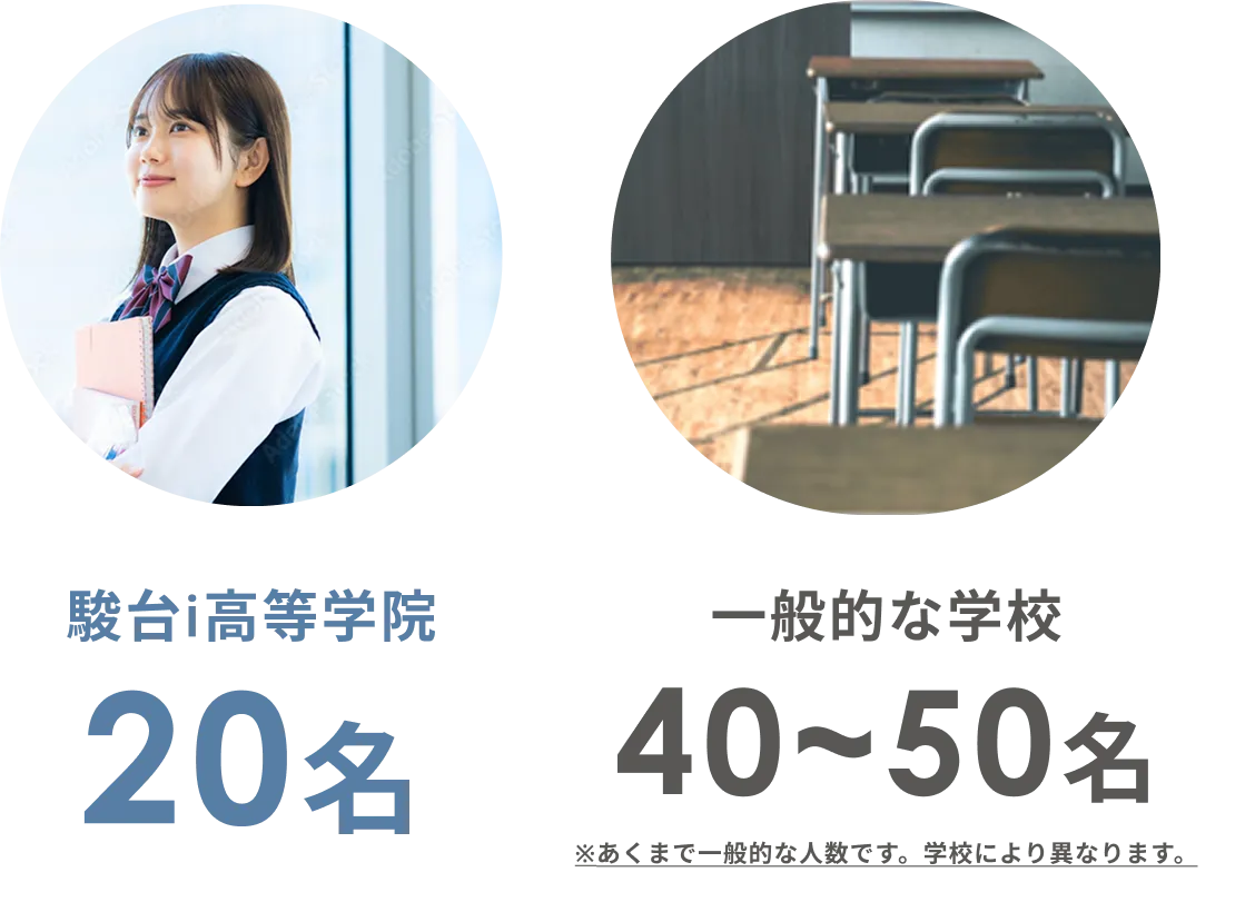 駿台i高等学院では、担任1人あたり最大20名までの少人数制を採用。