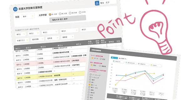 学習進捗はもちろん、成績管理・受験校決定に至るまで、